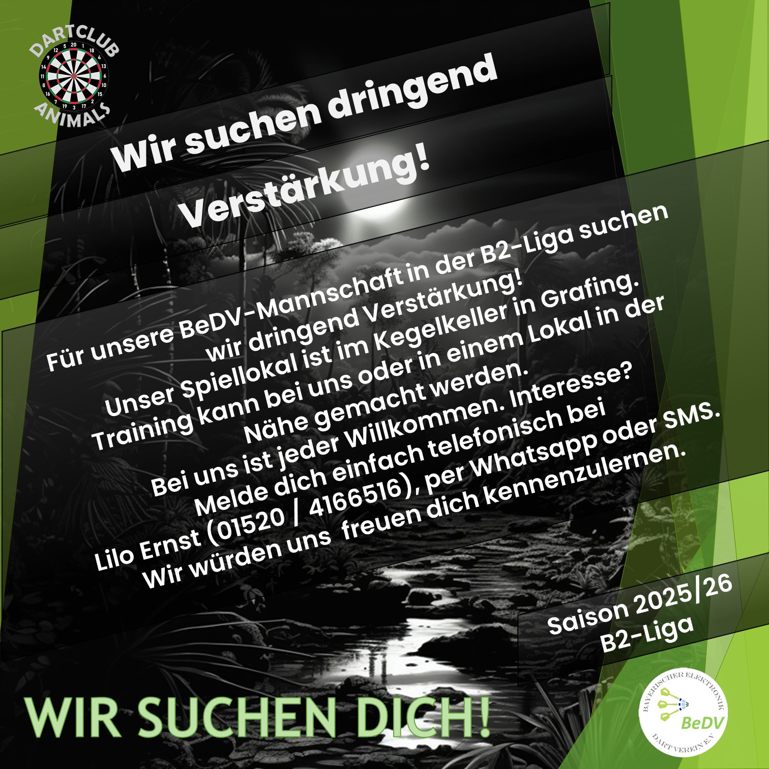 Unser Spielplan für die BeDV B2-Liga für die Saison 2025/26 ist online. In den "nachsten Spielterminen" stehen bereits die Spieltage drinnen, sind aber nur fiktiv und der Termin ist immer von der Spielwoche der Samstag. Die Mannschaftsführersitzung zur Terminabsprache findet am 03. Oktober 2025 statt. In der gleichen Woche werden danach die richtigen Spieltermine eingetragen.